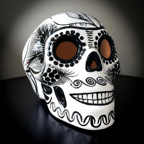 Sugar Skull Large Double Fired Ceramic 6" x 7" Mexico Folk Art