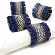 These cardwoven raffia napkin rings bring texture and sophistication to your table, and are perfect for special occasions or laid-back dinner parties. This unique hand weaving technique, which is often called tablet weaving, is a specialty of our artisans.  The coastal blue color palette is a classic that compliments a variety of napkin colors and patterns.