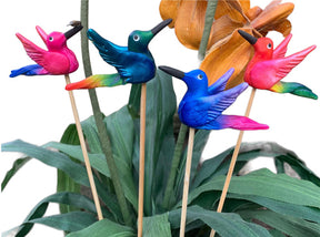 Colorful Hummingbird Plant Stick is available in assorted colors. Handcrafted Marzipan Hummingbird perched on a bamboo skewer. A wonderful gift filled with love that will fit any small space around your home.