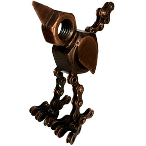Just in time for spring when all critters wake from a long winter. The birds are chirping, this little one will not chirp but it will put a smile on anyones face. Your friend will love this bird sculpture made from recycled bicycle chain.