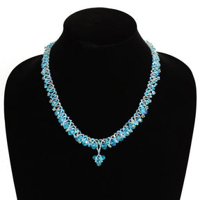 Lace Drop Necklace Woven Bead Crystals Magnetic Clasp Light Blue 18"