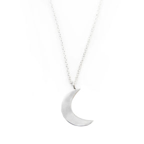 This delicate crescent moon pendant is great as a standalone piece or or layered. The moon is delicately brushed to add a shimmer.