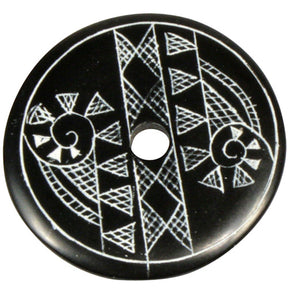 Coal, an unexciting derivative of carbon found deep in the earth, has been hand-carved and polished into this pendant with intricate scroll etchings inspired by the traditional art forms of the indigenous Muisca people who lived in the Andes Mountains of Colombia from 1000-1550 AD. Commonly used for fuel, this black sedimentary rock makes a unique piece to add to your jewelry collection or give as a gift to that special someone in your life.