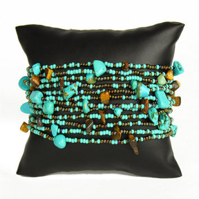 Turquoise and Bronze Stones and Glass Beads Twelve Strands 3" Wide Bracelet is backordered and will ship as soon as it is back in stock.